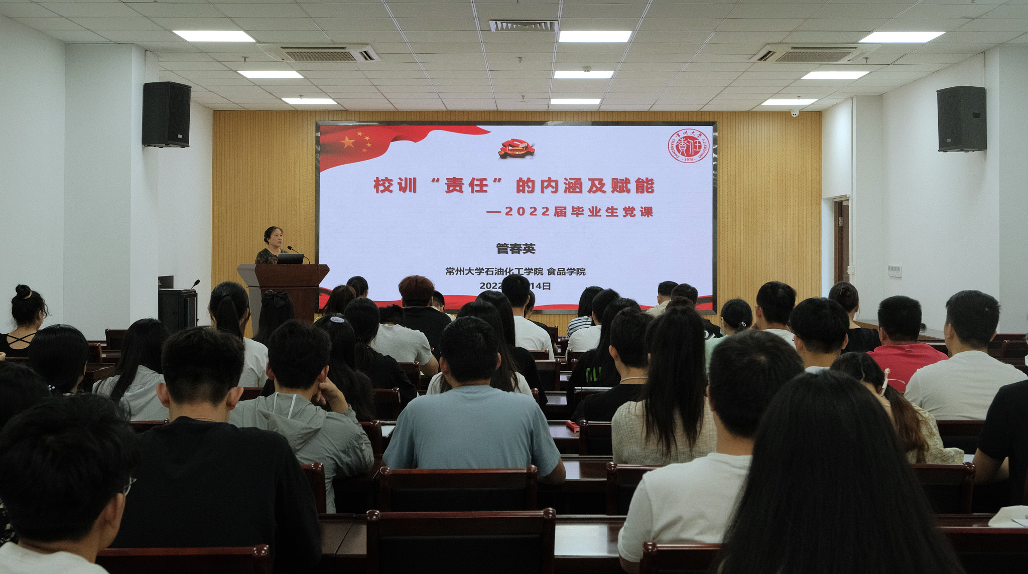 6月14日,太阳集团tyc33455官网开展2022届毕业生党员“毕业一课”活动,学院党委书记管春英以“校训‘责任’的内涵与赋能”为主题进行授课,毕业生党员与学院全体辅导员聆听党课。