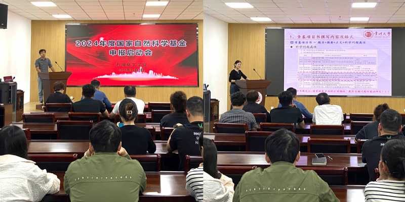 会上,刘平对比学校立项率分析了近三年学院立项情况,介绍了2024年度国家自然科学基金学院计划和推进安排。随后,近两年青年基金立项教师代表杨森、张楠从围绕撰写内容及格式、正文初稿、精修打磨、申报心态和学术交流等方面进行了详细的经验分享。